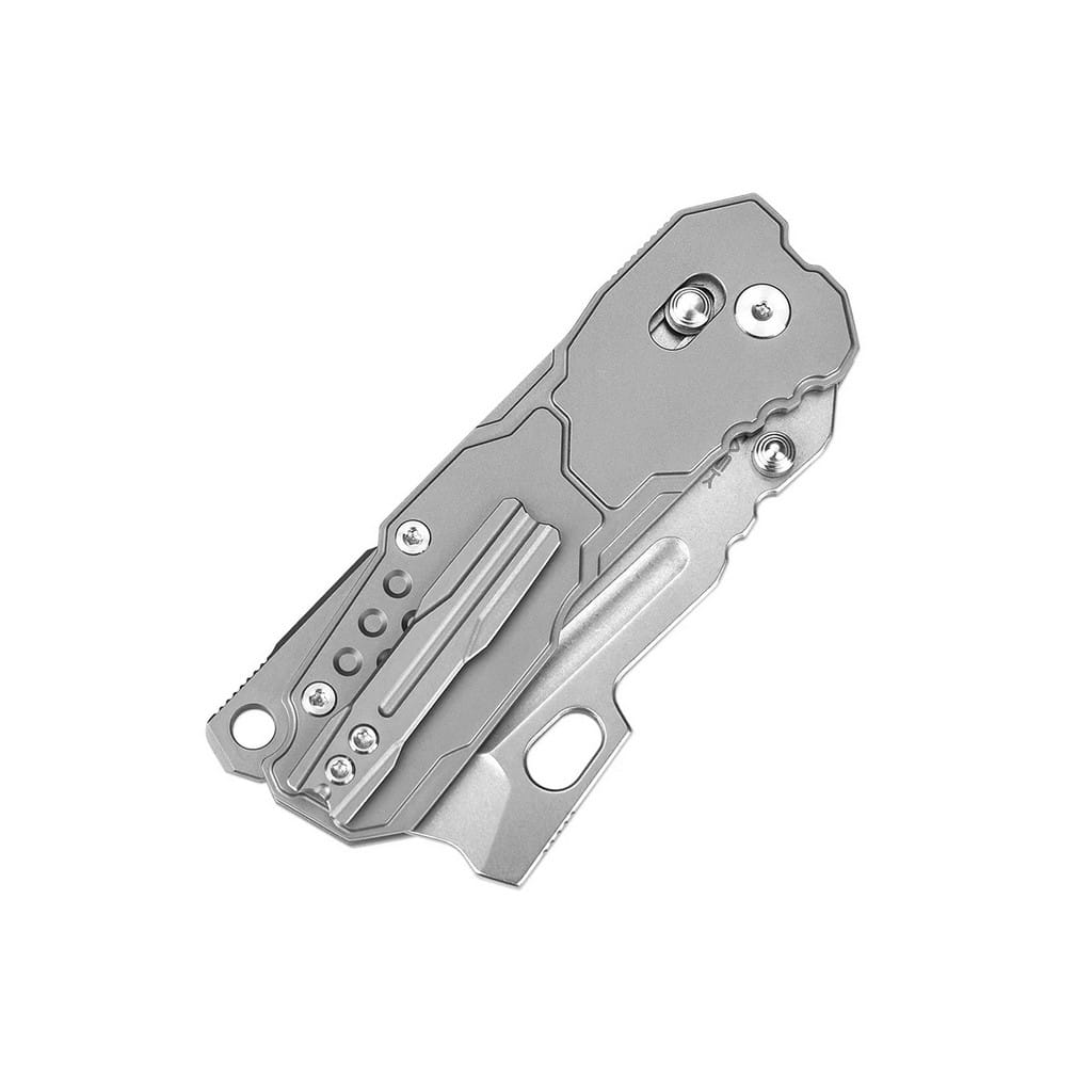 Groźny i niesamowicie funkcjonalny, taki właśnie jest folder o śmiałej nazwie Butcherling, zaprojektowany przez firmę Artisan Cutlery. Model charakteryzuje się futurystycznym designem przypominającym konstrukcję science fiction. Stanowi doskonały wybór dla kolekcjonerów poszukujących unikatowych noży o niebanalnym wyglądzie. Ostrze przypominające zmodyfikowany tasak wykonano z amerykańskiej stali nierdzewnej klasy premium CPM S35VN. Odpowiednio dobrane proporcje wanadu i niobu wpływają na jej twardość i wytrzymałość. Wykończenie głowni metodą Stonewash pozostawia nieregularną powłokę dobrze maskującą rysy i zadrapania powstające podczas eksploatacji. Klingę osadzono na ceramicznych łożyskach kulkowych, która przy wykorzystaniu obustronnego kołka wysuwa się płynnie i gładko. Prosta obsługa jedną ręką zadowoli zarówno osoby prawo, jak i leworęczne. Bezpieczeństwo gwarantuje blokada Crossbar Lock chroniąca przed przypadkowym złożeniem się narzędzia, gdy jest w użyciu oraz karbowany grzbiet ostrza dający stabilne wsparcie dla kciuka. Tytanowa rękojeść, dzięki frezowaniom pewnie leży w dłoni użytkownika, gwarantując komfortową pracę. Na zakończeniu umieszczono otwór umożliwiający przełożenie breloka ozdobnego lub paracordu. Całość dopełnia dwupozycyjny klips mocujący z tytanu, pozwalający na wygodne przenoszenie foldera w kieszeni spodni lub przy wyposażeniu. W zestawie znajduje się ściereczka z mikrofibry oraz czarne etui transportowe z miękkim wnętrzem i zamykaniem na suwak, zapakowane w białe pudełko prezentowe. Artisan Cutlery to firma tworząca estetyczne i innowacyjne noże, przy jednoczesnym zachowaniu metod tradycyjnego rzemiosła i dbałości o szczegóły. Jej zespół specjalistów, z bogatym i długoletnim doświadczeniem w branży, jest sukcesem niezawodności i wydajności na najwyższym poziomie.