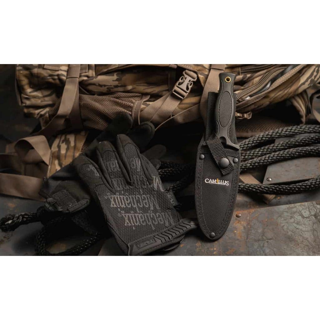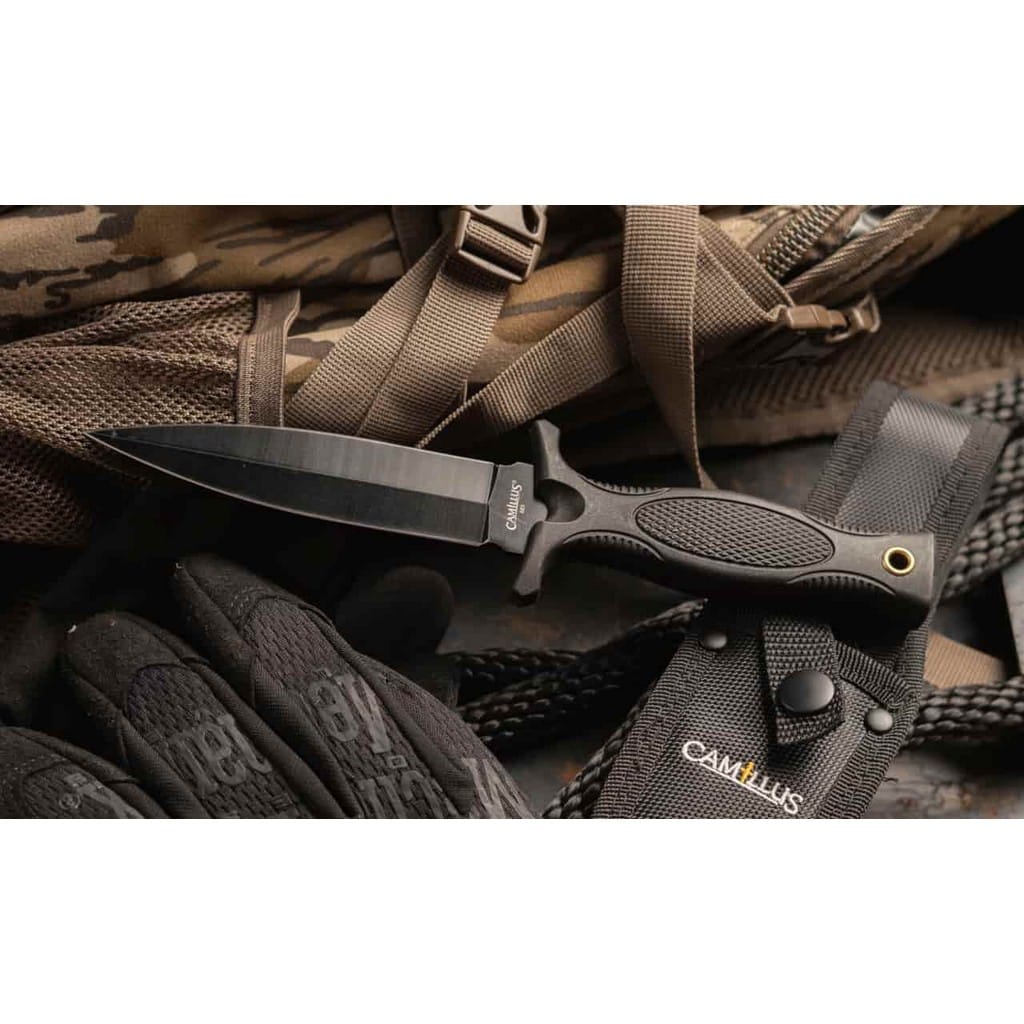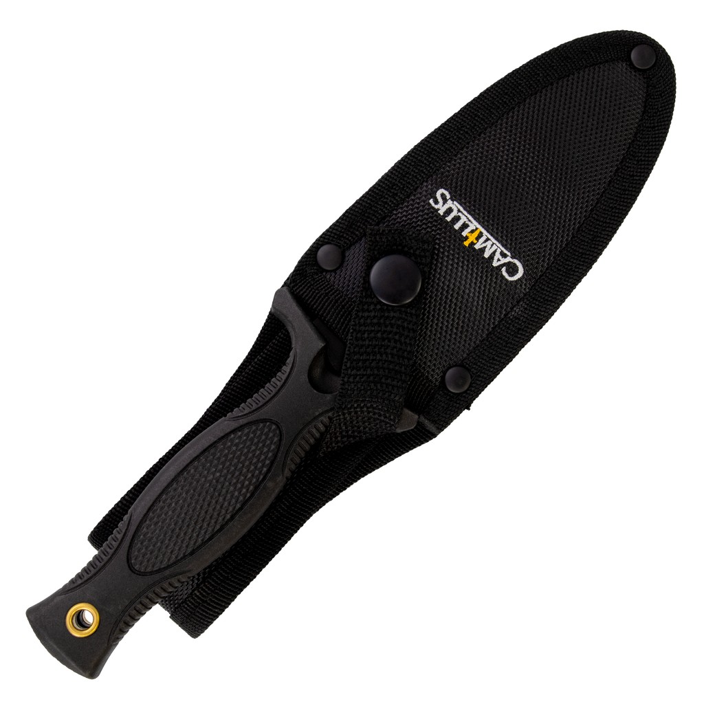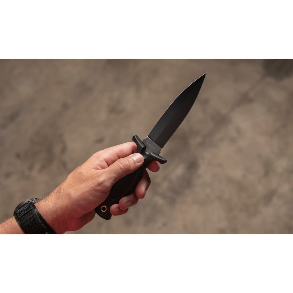 M3 firmy Camillus to doskonała propozycja dla pracowników mundurowych oraz wszystkich entuzjastów taktycznego wyposażenia. Smukłe, obosieczne ostrze o profilu Dagger charakteryzuje się dobrymi zdolnościami penetrującymi, a także świetnie sprawdzi się do pchnięć. Klingę wykonano ze stali nierdzewnej 420, którą w celu zabezpieczenia przed korozją i negatywnym działaniem czynników zewnętrznych pokryto czarną i antyodblaskową powłoką. Obustronny jelec chroni palce przed ich przypadkowym zsunięciem się na krawędź tnącą i skaleczeniem. Rękojeść z formowanego tworzywa, dzięki antypoślizgowej fakturze gwarantuje dobrą przyczepność do dłoni i pewny chwyt w każdych warunkach. Na zakończeniu umieszczono otwór na linkę umożliwiający przełożenie paracordu i stworzenie oplotu na nadgarstek. Do zestawu dołączono pochwę z nylonu umożliwiającą bezpieczne transportowanie produktu na pasku spodni, blisko ciała. Firma Camillus Cutlery od 1876 roku dostarcza niezawodne narzędzia, które wytrzymują próbę czasu. Jest to jeden z najstarszych amerykańskich producentów noży, cieszący się uznaniem na całym świecie.