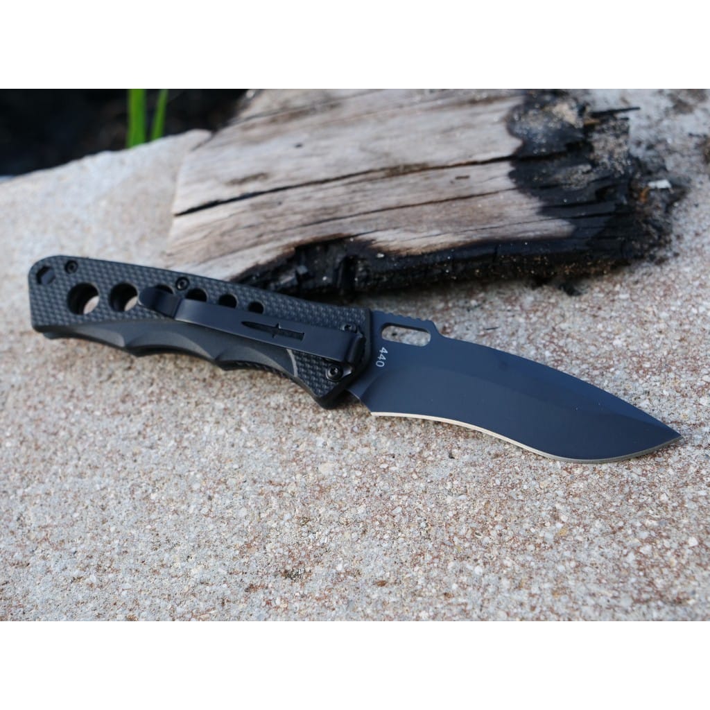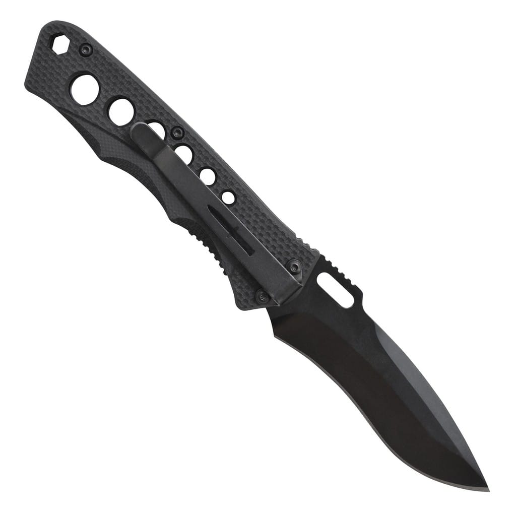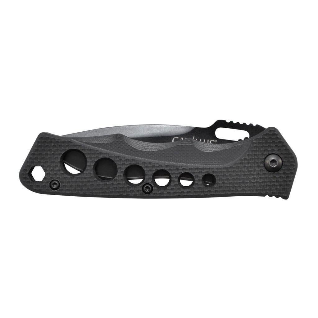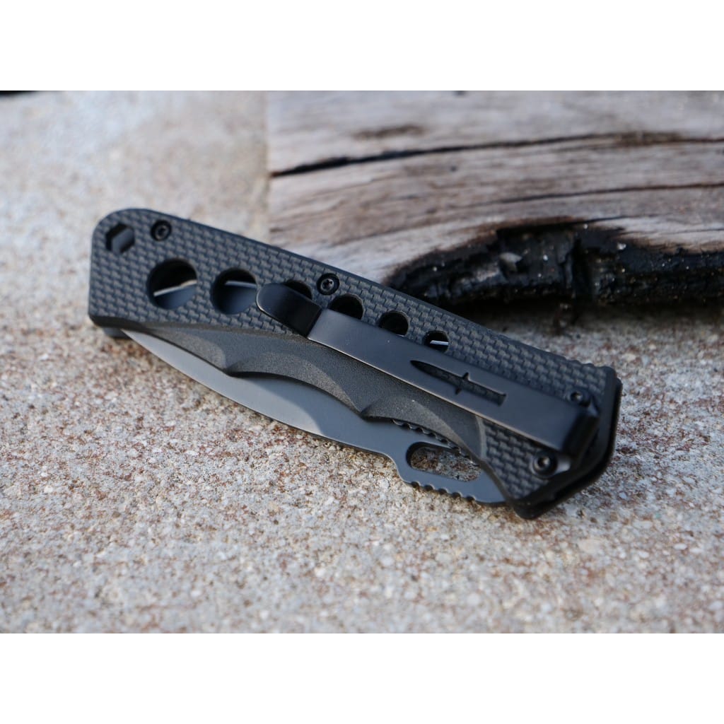 Camillus Rage to przystępny cenowo taktyczny nóż składany, zaprojektowany do codziennego użytku. Model posiada ostrze o uniwersalnym profilu Drop Point z kształtem fali, wykonane ze stali nierdzewnej 440. Pokryto ją opatentowaną przez producenta czarną powłoką Carbonitride Titanium. Jest to związek tytanu tworzący nieprzywierającą warstwę ochronną, która czyni klingę o dziesięć razy twardszą w stosunku do nieobrobionej stali. Dodatkowo zabezpiecza przed korozją i rysowaniem się powierzchni. W szybkim rozłożeniu narzędzia jedną ręką pomaga otwór na głowni. Bezpieczeństwo pracy zapewnia klasyczny mechanizm Liner Lock oraz karbowanie na grzbiecie noża stanowiące stabilne wsparcie dla kciuka. Czarne okładziny chwytu zrobiono z nylonu wzmocnionego włóknem szklanym o antypoślizgowej fakturze zwiększające przyczepność do dłoni. Rękojeść charakteryzuje się również ergonomicznym wyprofilowaniem pod zaciskające się palce, co gwarantuje pewny chwyt w każdych warunkach. Na zakończeniu znajduje się sześciokątny otwór na linkę umożliwiający przełożenie breloka ozdobnego lub paracordu. Konstrukcję uzupełnia klips mocujący do wygodnego przenoszenie foldera w kieszeni spodni lub przy wyposażeniu. Firma Camillus Cutlery od 1876 roku dostarcza niezawodne narzędzia, które wytrzymują próbę czasu. Jest to jeden z najstarszych amerykańskich producentów noży, cieszący się uznaniem na całym świecie.