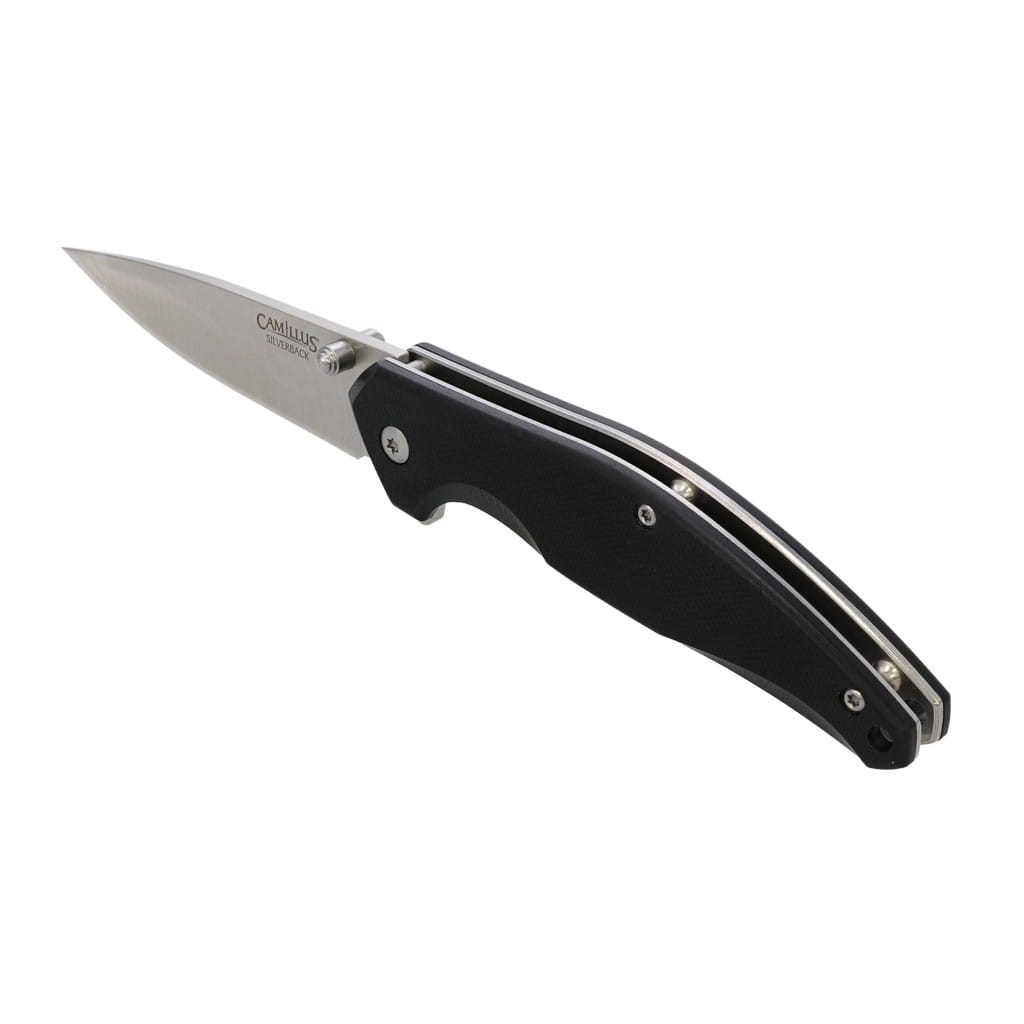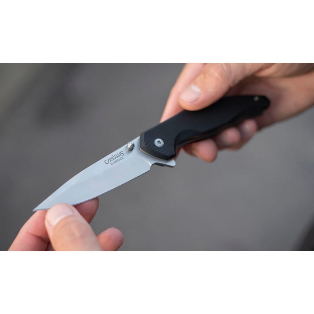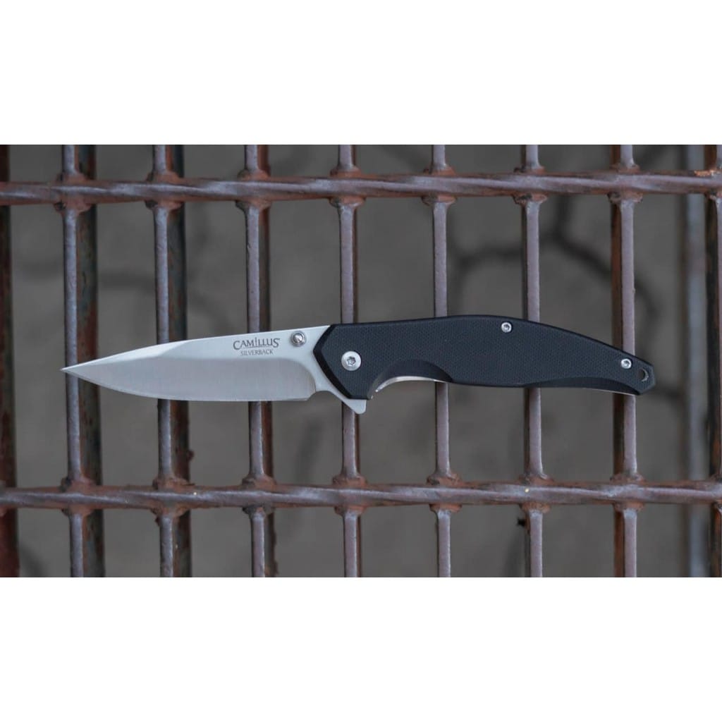 Silverback to folder zaprojektowany przez firmę Camillus do codziennego użytku. Model charakteryzuje się prostą, lecz funkcjonalną budową, która sprawdzi się do pracy w domu, jak i na świeżym powietrzu. Ostrze o uniwersalnym profilu Drop Point zostało wykonane ze stali nierdzewnej 3Cr13. Wykończenie jej metodą Satin pozostawia drobne ryski lekko matujące powierzchnię, dające efekt niedokładnego wypolerowania. W szybkim wysunięciu głowni pomaga obustronny kołek lub flipper, pełniący jednocześnie funkcję jelca. Prosta obsługa jedną ręką zadowoli zarówno osoby prawo, jak i leworęczne. Nad bezpieczeństwem użytkowania czuwa klasyczny mechanizm Liner Lock. Rękojeść z odpornego na warunki atmosferyczne materiału G10 posiada antypoślizgową fakturę zwiększającą przyczepność do dłoni. Na zakończeniu znajduje się otwór na linkę umożliwiający przełożenie breloka ozdobnego lub paracordu. Konstrukcję uzupełnia klips mocujący do wygodnego przenoszenie foldera w kieszeni spodni lub przy wyposażeniu. Firma Camillus Cutlery od 1876 roku dostarcza niezawodne narzędzia, które wytrzymują próbę czasu. Jest to jeden z najstarszych amerykańskich producentów noży, cieszący się uznaniem na całym świecie.
