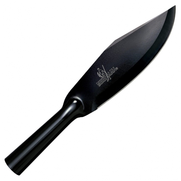Cold Steel Bowie Blade Bushman to bardzo wytrzymały nóż terenowy wykonany w całości z jednego kawałka 2,5 mm grubości stali węglowej SK-5. Taka konstrukcja eliminuje wszelkie słabe punkty i znacznie podnosi niezawodność narzędzia. Głownia typu Bowie zahartowana została do twardości 54 HRC i poddana testom, które przetrwały  ponad 2 tonowe obciążenie. Dodatkowo całość konstrukcji pokryto czarną powłoką zabezpieczającą przed korozją oraz refleksami świetlnymi. Puste wnętrze rękojeści wystarczy owinąć taśmą aby stworzyć niewielki schowek na tabletki, zapałki czy rozpałkę. Producent projektując w ten sposób nóż dał możliwość zamocowania go na kiju i stworzenie praktycznej włóczni, która z pewnością będzie niezastąpiona na polowaniu. W tylnej części znajduje się również otwór na linkę zabezpieczającą, co jest niezwykle przydatne podczas cięższej pracy. Bowie Blade Bushman to idealny kompan do prac terenowych takich jak rąbanie, batonowanie, siekanie, ścinanie czy podważanie. W komplecie z nożem znajduje się krzesiwo oraz pochwa wykonana z tworzywa Secure- Ex z praktycznym mocowaniem do pasa.
