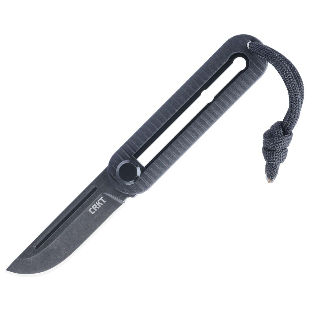KatanaX firmy CRKT to mały, zwinny i lekki nóż składany zaprojektowany do drobnych, codziennych czynności. Otwór na rękojeści pozwala na przełożenie metalowego kółka i przenoszenie foldera w formie breloka przy kluczach. Ostrze o profilu Drop Point zostało wykonane z wysokiej jakości stali narzędziowej D2 o doskonałej wydajności cięcia, twardej i odpornej na zużycie. Wykończenie jej na czarno metodą Stonewash pozostawia nieregularną powłokę dobrze maskującą rysy i zadrapania powstające podczas eksploatacji. Klingę osadzono na łożyskach kulkowych, która wysuwa się bezpiecznie na zewnątrz za pomocą manualnego suwaka od blokady OTF. Okładziny chwytu zrobiono z termoplastycznego i trwałego materiału Grivory o nierównomiernej fakturze poprawiającej przyczepność do dłoni. Na zakończeniu zamocowano czarną linkę, co ułatwi wyjmowanie noża z kieszeni.