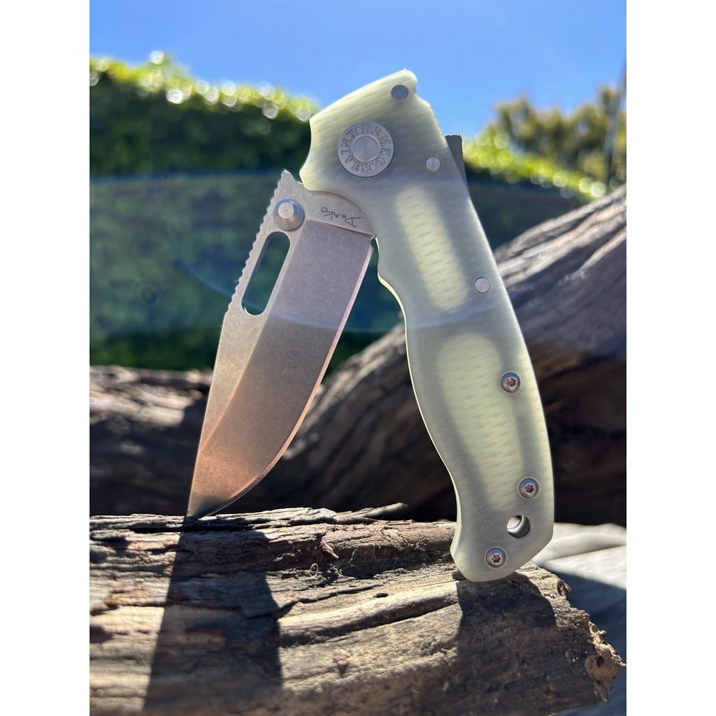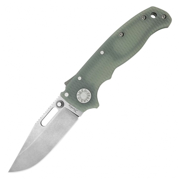 Model AD20.5 firmy Demko Knives to idealna propozycja noża EDC charakteryzująca się wytrzymałością i wysoką jakością wykonania. Praktyczny design oraz dogłębnie przemyślana konstrukcja czyni z niego świetny wybór do kolekcji. Głownia o uniwersalnym profilu Clip Point została zrobiona z amerykańskiej stali nierdzewnej klasy premium CPM S35VN. Domieszka niobu zapewnia wyjątkową równowagę pomiędzy odpornością na korozję, a trzymaniem ostrości. Wykończenie klingi metodą Stonewash pozostawia nieregularną powłokę bardzo dobrze maskującą rysy i zadrapania powstające podczas eksploatacji. Obustronny kołek oraz otwór na ostrzu pozwalają zarówno osobom prawo, jak i leworęcznym na szybkie rozłożenie foldera. Dodatkowo system łożysk kulkowym wpływa na płynne i gładkie działanie narzędzia. Karbowana górna krawędź głowni stanowi stabilne wsparcie dla kciuka i ułatwia realizację precyzyjnych zadań. Występujący w modelu mechanizm Shark Lock, zaprojektowany przez Andrew Demko, to jedna z najbardziej innowacyjnych i najsilniejszych blokad na rynku. Rampa w postaci płetwy na grzbiecie gwarantuje bezpieczeństwo podczas pracy oraz szybkie składanie noża jedną ręką, co niezmiernie ucieszy niejednego użytkownika. Rękojeść z odpornego na warunki atmosferyczne materiału G10 cechuje się antypoślizgową fakturą, która zwiększa przyczepność do dłoni, nawet gdy jest ona mokra lub w rękawicy. Ergonomiczne wyprofilowanie natomiast pozwala na intuicyjne ułożenie palców i pewny chwyt w każdych warunkach. Na zakończeniu znajduje się otwór do przełożenia linki paracord lub ozdobnego breloka. Całość uzupełnia prawo pozycyjny klips mocujący do wygodnego przenoszenie narzędzia w kieszeni spodni lub przy wyposażeniu. Do zestawu dołączono również klips dla osób leworęcznych. Model AD20.5 doskonale sprawdzi się w codziennym użytkowaniu u wszystkich miłośników noży, poszukujących niezawodnego foldera zapewniającego funkcjonalność na najwyższym poziomie.