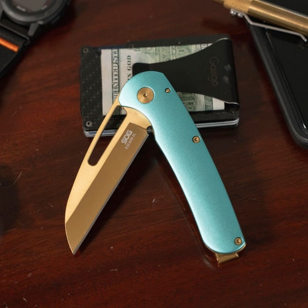 Escape FL to elegancki folder o kompaktowych rozmiarach, zaprojektowany przez amerykańską firmę SOG z myślą o codziennym użytkowaniu. Model posiada ostrze o profilu Wharncliffe z idealnie prostą krawędzią tnącą, która świetnie sprawdzi się do precyzyjnego cięcia. Głownia została wykonana z wysokiej jakości stali nierdzewnej 440C. W celu zabezpieczenia przed korozją i negatywnym działaniem czynników zewnętrznych klingę pokryto złotą powłoką ochronną TiNi o właściwościach antyodblaskowych. Nóż możemy sprawnie rozłożyć jedną ręką przy wykorzystaniu podłużnego otworu na palec. Bezpieczeństwo pracy, gdy narzędzie jest w użyciu, zapewnia solidny i niezawodny mechanizm Frame Lock. Rękojeść to połączenie aluminium anodowanego na błękitny kolor na jednej ze stron, z solidną, stalową ramą na drugiej. Delikatne wyprofilowanie pozwala na intuicyjne ułożenie dłoni, a także gwarantuje pewny chwyt. Konstrukcję uzupełnia klips mocujący do wygodnego przenoszenia foldera w kieszeni spodni lub przy wyposażeniu. Escape FL to doskonały towarzysz aktywności na świeżym powietrzu oraz w domu.