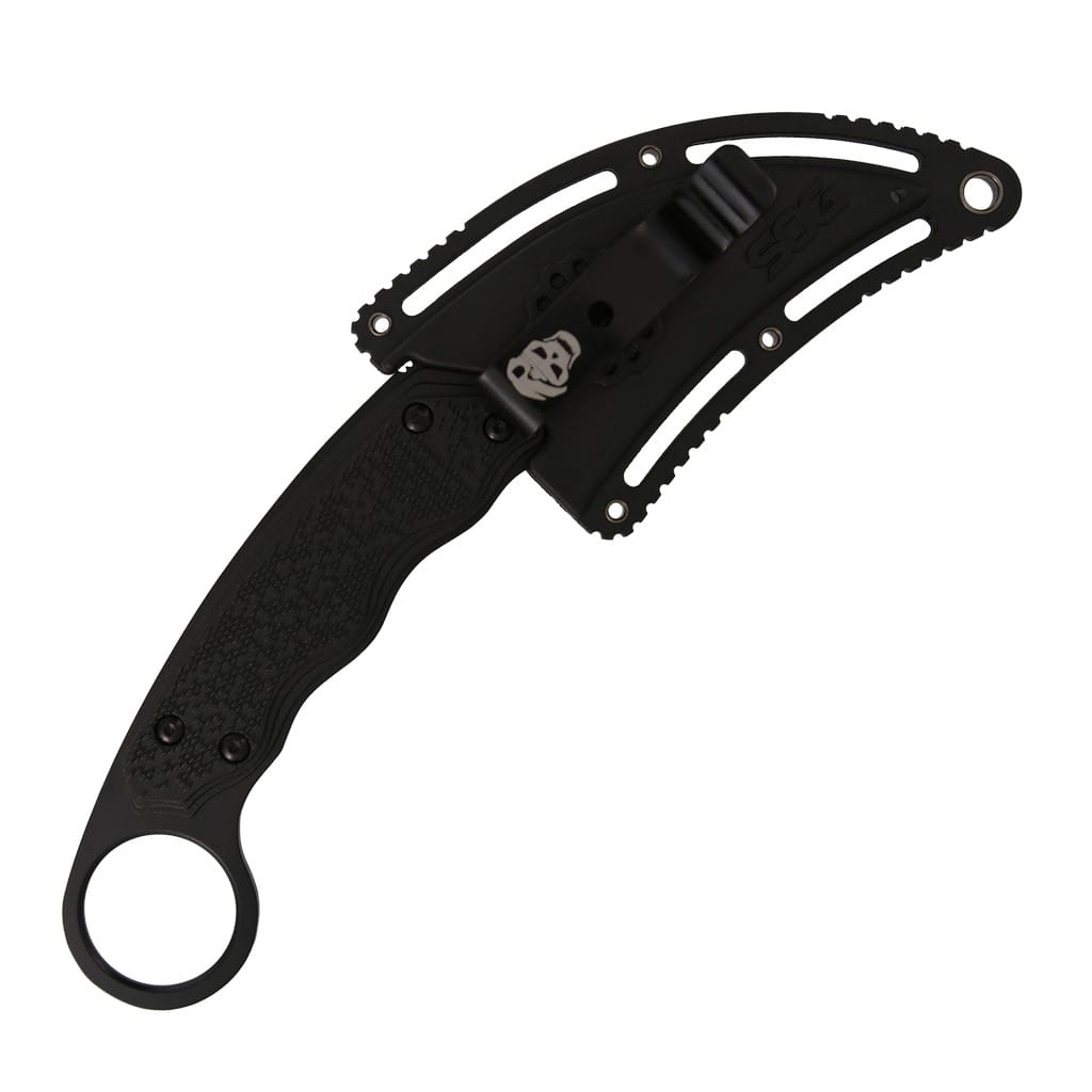 Gambit amerykańskiej firmy SOG to kompaktowy nóż z ostrzem stałym zaprojektowany jako funkcjonalne narzędzie EDC do zadań w domu i w terenie. Model posiada ostrze o profilu Sheepsfoot wykonane ze stali nierdzewnej 7Cr17MoV. W celu zabezpieczenia głowni przed negatywnym działaniem czynników zewnętrznych pokryto ją czarną i antyodblaskową powłoką PVD. Karbowany grzbiet klingi stanowi stabilne wsparcie dla kciuka i poprawia bezpieczeństwo użytkowania. Nóż charakteryzuje się konstrukcją full tang, czyli został zrobiony z jednego kawałka stali, co zwiększa jego wytrzymałość podczas pracy. Teksturowane okładziny chwytu z nylonu wzmocnionego włóknem szklanym, dzięki ergonomicznemu wyprofilowaniu gwarantują pewny chwyt w każdych warunkach. Na zakończeniu rękojeści znajduje się okrągła głowica, która przedłuża chwyt oraz zwiększa kontrolę nad narzędziem. Całość dopełnia kompatybilna z systemem Molle pochwa z tworzywa, wyposażona w klips mocujący z funkcją obrotu o 360°. Pozwala to dopasować kaburę do indywidualnych potrzeb i preferencji przenoszenia noża.