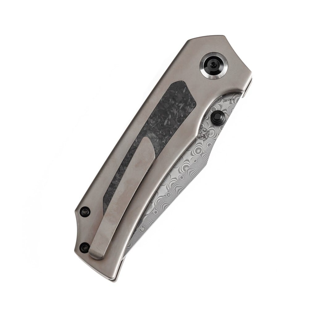 Fermi to funkcjonalny folder EDC o solidnej konstrukcji zaprojektowany dla firmy Kansept Knives przez Burchtree Designs. Ostrze o profilu Clip Point z kształtem fali wykonano ze stali damasceńskiej o interesującym wzorze bardzo dobrze ukrywającym wszelkie niedoskonałości powstające podczas eksploatacji. Klingę osadzono na ceramicznych łożyskach kulkowych, która przy wykorzystaniu obustronnego kołka wysuwa się płynnie i gładko. Prosta obsługa jedną ręką zadowoli zarówno osoby prawo, jak i leworęczne. Bezpieczeństwo pracy zapewnia klasyczny mechanizm Liner Lock skutecznie blokujący narzędzie po rozłożeniu. Tytanowa rękojeść została wzbogacona o wkładki z eleganckiego włókna węglowego. Dodatkowo ergonomiczne wyprofilowanie okładzin gwarantuje pewny i komfortowy chwyt. Na zakończeniu umieszczono otwór umożliwiający przełożenie breloka ozdobnego lub paracordu. Konstrukcję uzupełnia klips mocujący z tytanu pozwalający na wygodne przenoszenie foldera w kieszeni spodni lub przy wyposażeniu. W zestawie znajduje się ściereczka z mikrofibry oraz wysokiej jakości pokrowiec transportowy, a całość zapakowano w czarne pudełko prezentowe. Kansept Knives to uosobienie najnowocześniejszych technologii i praktycznego wzornictwa. Jej motto brzmi “Nie tylko produkujemy noże, czynimy je lepszymi”, co doskonale oddaje charakter tej marki. Firma wyróżnia się z tłumu innowacyjnymi koncepcjami angażując do współpracy najlepszych projektantów z branży. Każdy element jest skrupulatnie obrabiany, za pomocą zaawansowanych maszyn lub ręcznie, tworząc znakomite połączenie kunsztu i estetyki.