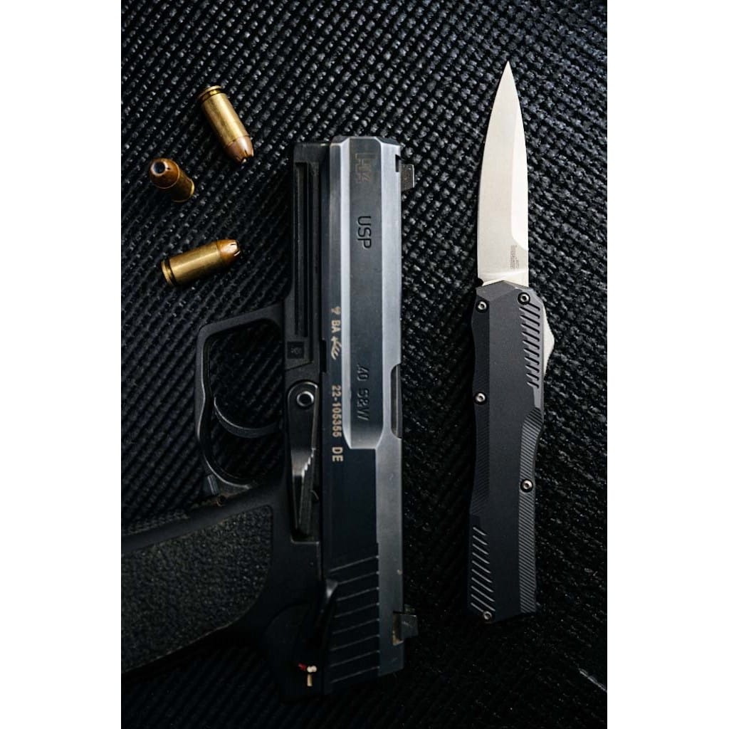 Niewiele noży budzi, aż tyle emocji jak w przypadku modeli automatycznych. Po wielu rygorystycznych testach i mocno zakrojonych badaniach, knifemaker Matt Diskin wraz z firmą Kershaw byli gotowi zaprezentować pierwszy automat OTF. Folder Livewire, wyprodukowany w USA, łączy w sobie nie tylko wysoki poziom wykonania, ale także nowoczesny design i szybkość działania. Posiada ostrze zrobione z amerykańskiej stali proszkowej klasy premium CPM MagnaCut. Zapewnia ona doskonałą równowagę pomiędzy ostrością, wytrzymałością i odpornością na korozję. Wykończenie jej metodą Stonewash pozostawia nieregularną powłokę świetnie maskującą rysy i zadrapania powstające podczas eksploatacji. Głownia typu Spear Point cechuje się bardzo dobrymi zdolnościami penetracyjnymi. Anodowana na czarno aluminiowa rękojeść charakteryzuje się antypoślizgową teksturą, co zwiększa przyczepność do dłoni i poprawia komfort chwytu. Przycisk, z karbowaną fakturą służący do rozkładania narzędzia, pozwala na intuicyjne ułożenie palca oraz gwarantuje niezawodne wysuwanie klingi. Konstrukcję uzupełnia dwupozycyjny klips mocujący do głębokiego przenoszenia foldera w kieszeni spodni. Livewire to idealny wybór dla zaawansowanych użytkowników, dla których jakość i dynamika są na pierwszym miejscu.