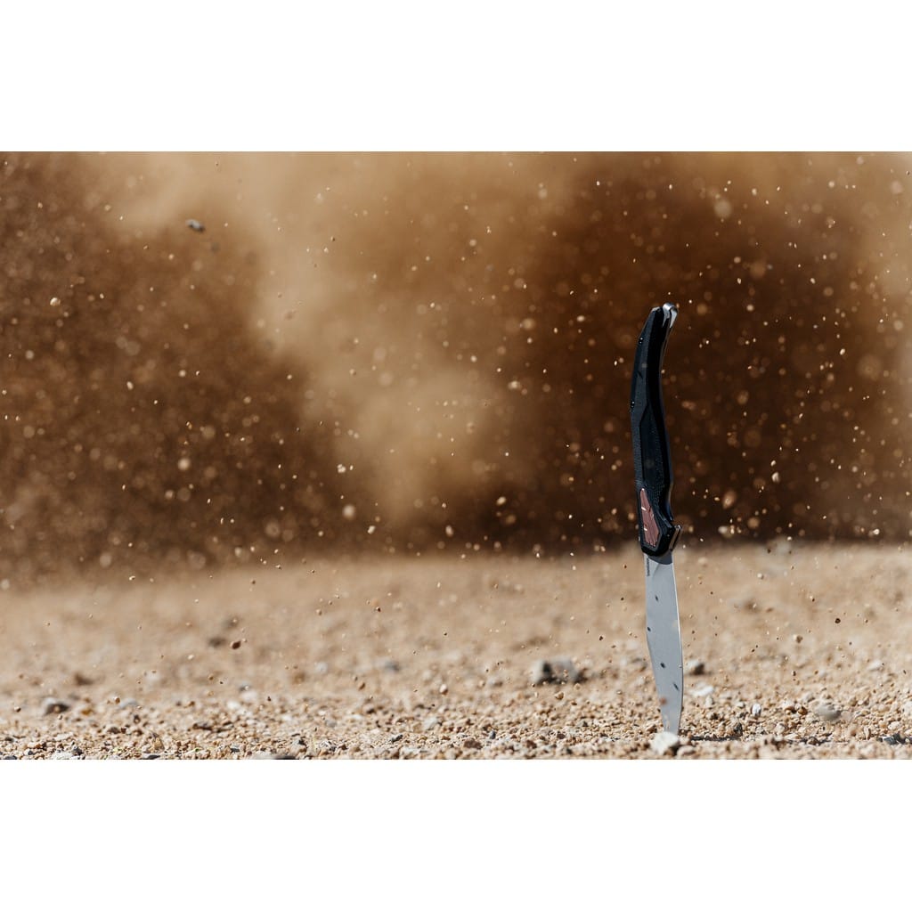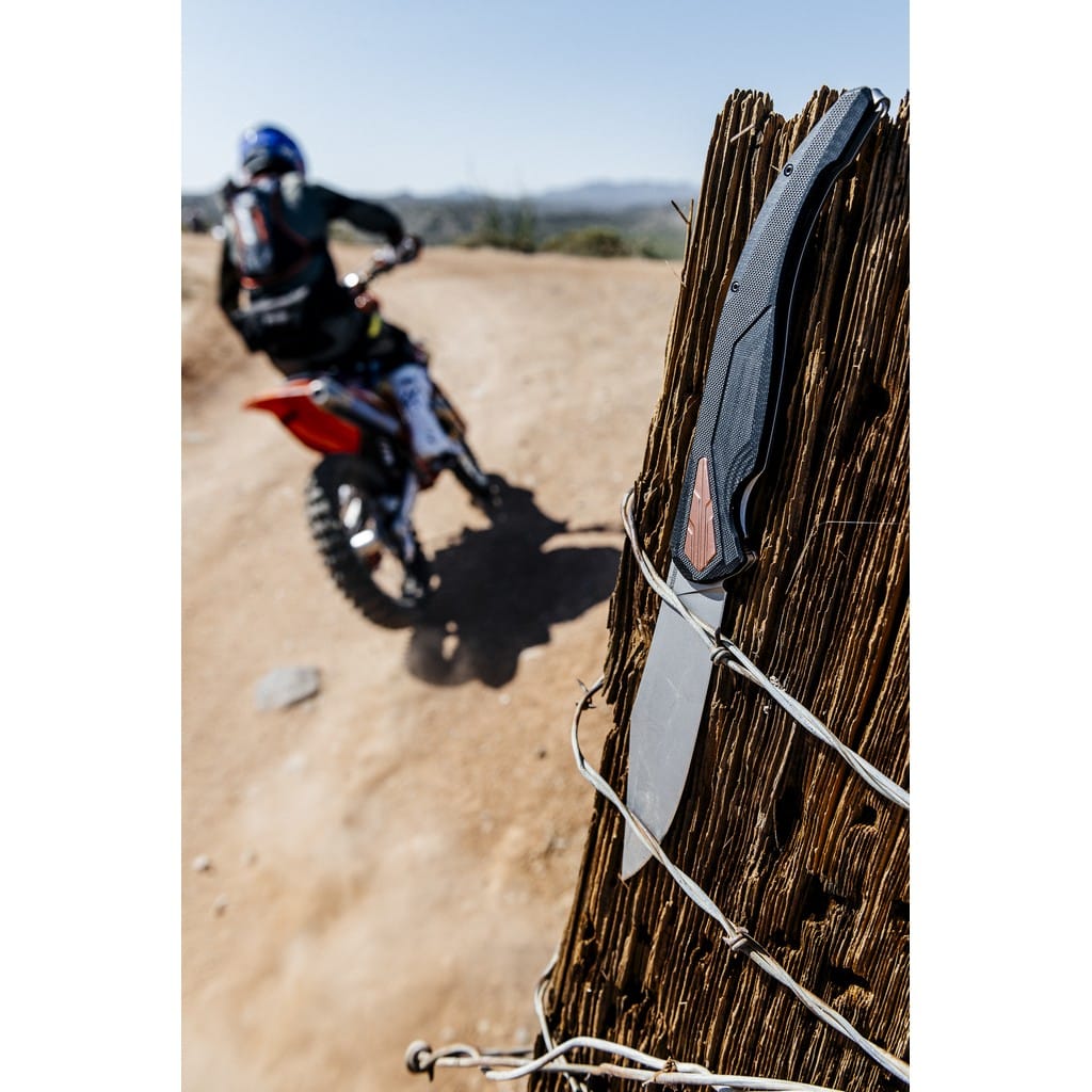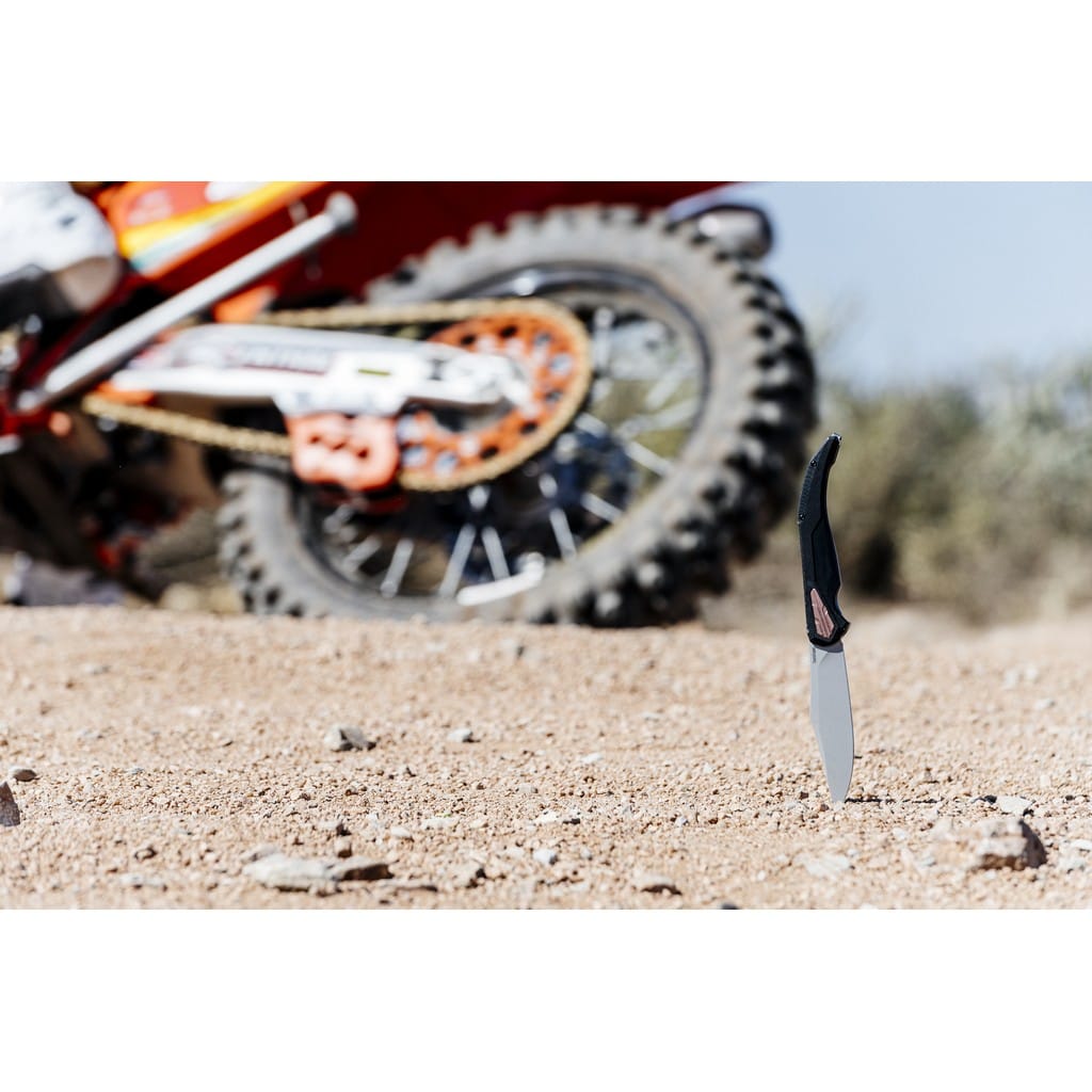 Do powstania modelu Strata zainspirowały firmę Kershaw hiszpańskie noże Navaja, które w XIX wieku zostały zaadaptowane przez mieszkańców jako defensywne narzędzia bojowe dla obywateli klasy robotniczej. Folder 2076 przekształca ten tradycyjny styl w nowoczesny design, który z powodzeniem może być używany do codziennych zadań. Szerokie ostrze Clip Point wykonano z wysokiej jakości stali narzędziowej D2, która długo utrzymuje właściwą ostrość i jest wytrzymała. Wykończono ją metodą Beadblast, dzięki której uzyskano matową powłokę. Nad bezpieczeństwem pracy czuwa solidna blokada Frame Lock, a także karbowany grzbiet głowni stanowiący stabilne podparcie dla kciuka. Szybkie i płynne rozłożenie noża jedną ręką w ułamku sekundy umożliwia łożyskowy systemem KVT (Kershaw Velocity Technology) przy wykorzystaniu dyskretnego flippera. Rękojeść to połączenie lekkiego tworzywa G10 o antypoślizgowej fakturze na jednej ze stron, ze stalą nierdzewną na drugiej. Całość odpowiednio wyprofilowano, tak aby zapewnić jak najwyższy komfort użytkowania. Ozdobne miedziane elementy na chwycie dodają charakteru konstrukcji. Całość dopełnia klips mocujący do wygodnego i dyskretnego przenoszenia foldera głęboko w kieszeni spodni lub przy wyposażeniu.