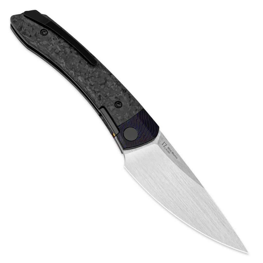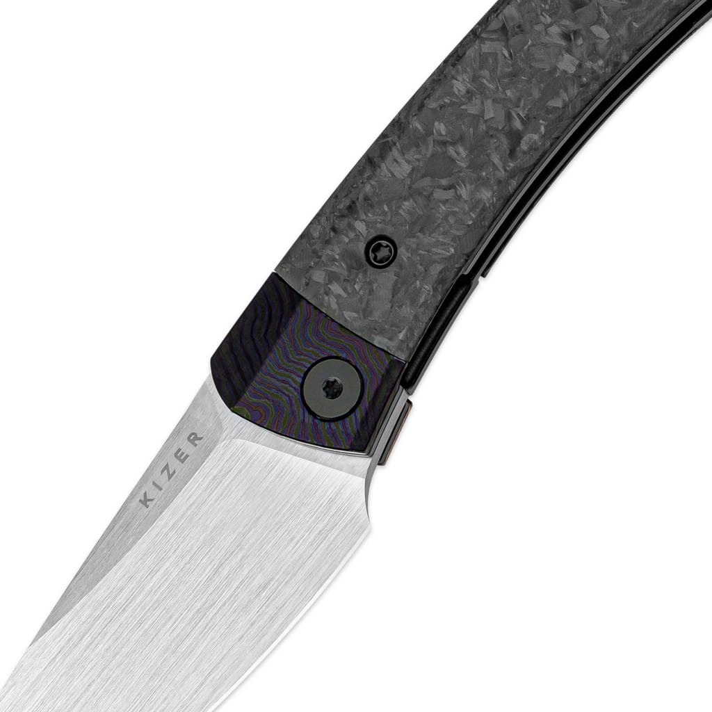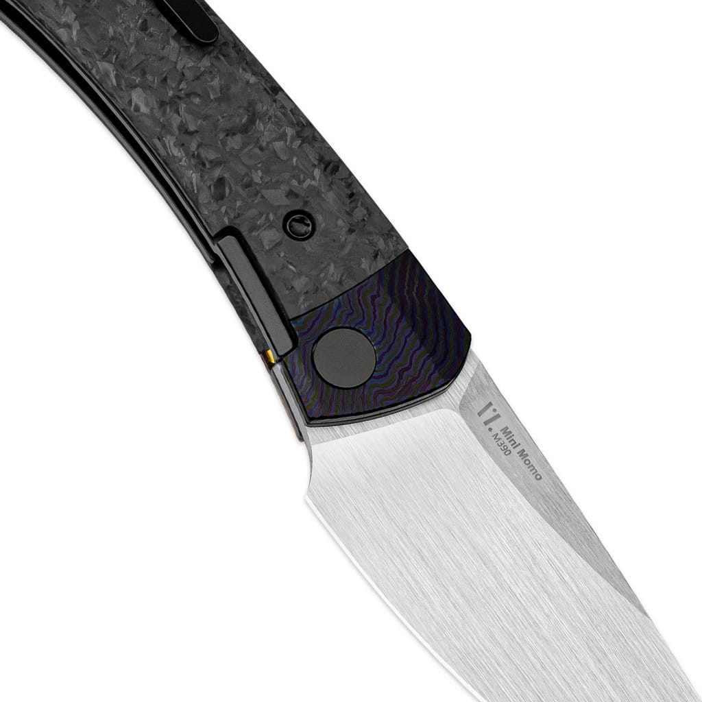Mini MoMo to kompaktowy folder codziennego użytku czerpiący inspirację z japońskich noży kiridashi. Charakteryzuje się opływowym kształtem oraz nowoczesnym i eleganckim wyglądem. Został zaprojektowany dla firmy Kizer przez Władimira Legacheva i wyprodukowany z wysokiej jakości materiałów. Głownię o profilu Drop Point wykonano z austriackiej stali nierdzewnej klasy premium Bohler M390 cechującej się doskonałą odpornością na korozję i ścieranie. Odpowiednia kompozycja wanadu, molibdenu i wolframu sprawia, że krawędź tnąca pozostaje ostra na długi czas. Wykończenie głowni poprzez ręczne szczotkowanie pozostawia unikatowy ślad, który dobrze ukrywa powstające w trakcie użytkowania rysy. Klinga osadzona na ceramicznych łożyskach kulkowych przy wykorzystaniu front flippera wysuwa się płynnie i gładko. Prosta obsługa jedną ręką zadowoli zarówno osoby prawo, jak i leworęczne. Bezpieczeństwo pracy zapewnia klasyczny mechanizm Liner Lock blokujący narzędzie po rozłożeniu, a także karbowany grzbiet ostrza stanowiący stabilne wsparcie dla kciuka. Rękojeść składa się z bolstera zrobionego z innowacyjnego materiału Timascus powstającego z dwóch lub więcej stopów tytanu oraz z okładzin z włókna węglowego o strukturze marmuru. Na zakończeniu umieszczono otwór umożliwiający przełożenie breloka ozdobnego lub paracordu. Konstrukcję uzupełnia tytanowy klips mocujący pozwalający na wygodne przenoszenie noża w kieszeni spodni lub przy wyposażeniu. W zestawie znajduje się ściereczka z mikrofibry, woreczek transportowy oraz zapasowe śrubki, a całość zapakowano w czarne pudełko prezentowe. Mini MoMo świetnie sprawdzi się w terenowej kuchni do przygotowywania posiłku, a także do wszelkich zadań EDC. Firma Kizer współpracuje z projektantami z całego świata i skutecznie przekształca koncepcje w rzeczywistość. Wykorzystuje materiały pochodzące z USA i Japonii, aby dopasowanie i wykończenie każdego egzemplarza było na najwyższym poziomie. Posiada centrum badawczo-rozwojowe, a także linię przemysłową z zaawansowanymi i precyzyjnymi maszynami dostarczającymi wydajność i niezawodność. Nie uznaje dróg na skróty, żadnych kompromisów, a każdy etap produkcji wykonuje we właściwy i efektywny sposób.