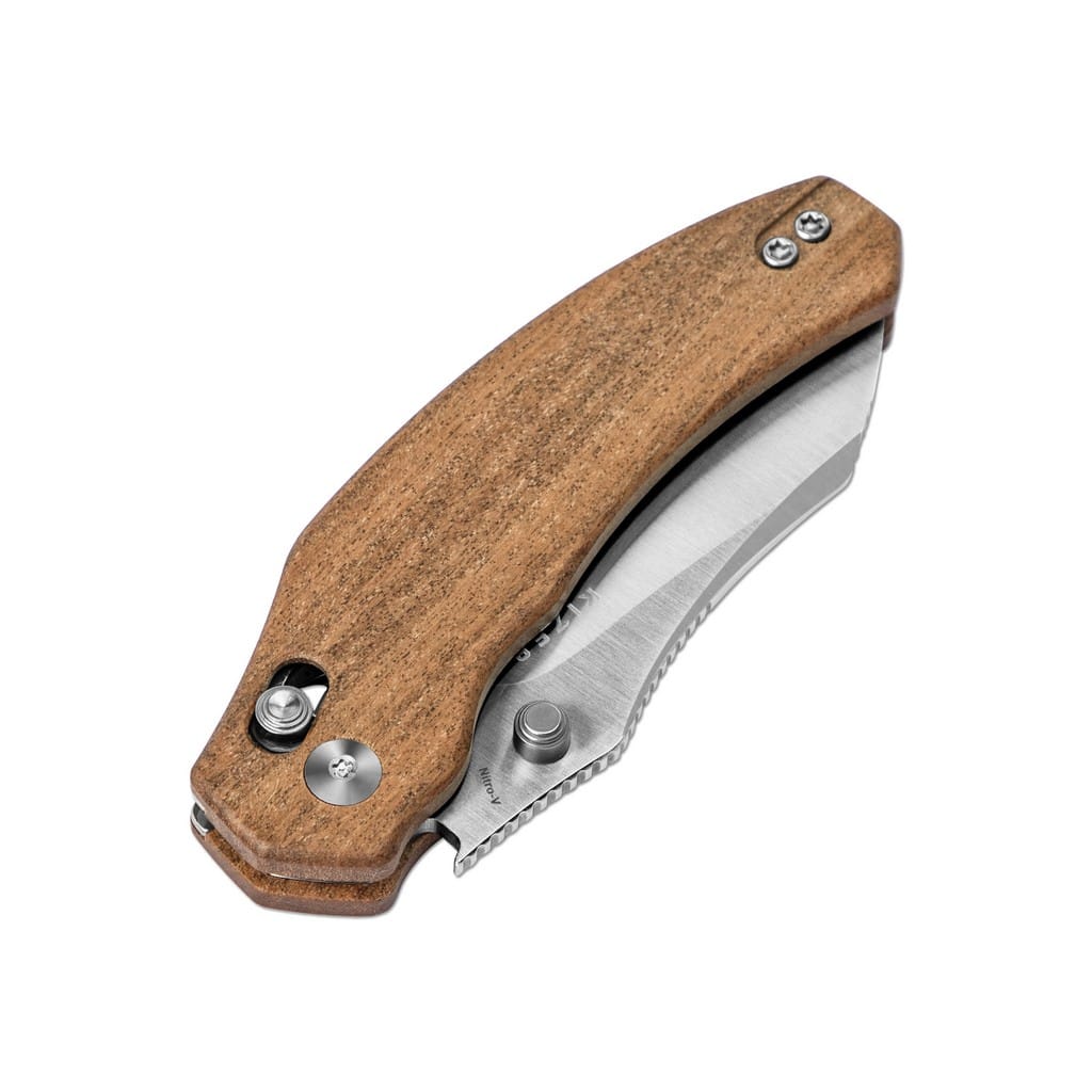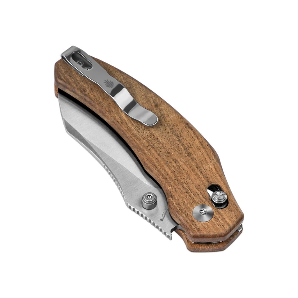 Bulldog to funkcjonalny nóż EDC zaprojektowany przez firmę Kizer do codziennych zadań w domu i na świeżym powietrzu. Należy do przystępnej cenowo serii Vanguard, oferującej bardzo dobrą jakość materiałów. Szerokie ostrze o profilu Sheepsfoot zostało wykonane z niemieckiej stali nierdzewnej Nitro-V wzbogaconej o azot i wanad. Pierwiastki te zwiększają twardość i deklarują wyjątkową wydajność krawędzi tnącej, a także odporność na korozję. Wykończenie głowni metodą Satin pozostawia drobne ryski, lekko matujące powierzchnię, z efektem niedokładnego wypolerowania. Klingę osadzono na ceramicznych łożyskach kulkowych, która przy wykorzystaniu kołka, znajdującego się po obu stronach ostrza, wysuwa się płynnie i gładko. Prosta obsługa jedną ręką zadowoli zarówno osoby prawo, jak i leworęczne. Karbowany grzbiet głowni stanowi stabilne wsparcie dla kciuka i ułatwia realizację zadań wymagających precyzji. Unikatowy rodzaj blokady Clutch Lock, w postaci obustronnego bolca na rękojeści, zapewnia wysoki poziom bezpieczeństwa. Jest to system o nazwie Gemini składający się z dwóch sprężyn w kształcie litery omega, mający po pięć otworów na obu linersach. Co daje aż 25 opcji indywidualnego dopasowania mocy blokady, w zależności od preferencji użytkownika. Producent zadbał również o łatwy demontaż okładziny, aby móc dokonać regulacji sprężyn. Ergonomicznie wyprofilowana rękojeść z naturalnego drewna Mkuruti, przypominającego elegancki antyk, gwarantuje komfortowy chwyt. Konstrukcję uzupełnia dwupozycyjny klips mocujący pozwalający na wygodne przenoszenie noża w kieszeni spodni lub przy wyposażeniu. W zestawie znajduje się ściereczka z mikrofibry do czyszczenia narzędzia oraz zestaw zapasowych śrubek i sprężyn. Firma Kizer współpracuje z projektantami z całego świata i skutecznie przekształca koncepcje w rzeczywistość. Wykorzystuje materiały pochodzące z USA i Japonii, aby dopasowanie i wykończenie każdego egzemplarza było na najwyższym poziomie. Posiada centrum badawczo-rozwojowe, a także linię przemysłową z nowoczesnymi i precyzyjnymi maszynami, które dostarczają wydajność i niezawodność. Nie uznaje dróg na skróty, żadnych kompromisów, a każdy etap produkcji realizuje we właściwy i efektywny sposób.