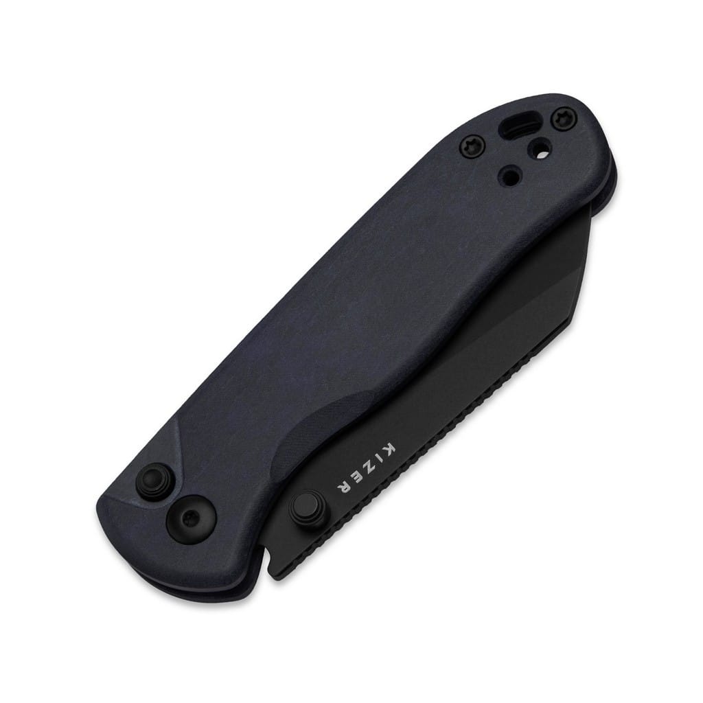 Azo to doświadczony projektant firmy Kizer znany z prostych i praktycznych konstrukcji, które są wysoce cenione przez miłośników noży codziennego użytku. Stworzony przez niego model Drop Bear 2 to kolejna udana iteracja w nieznacznie pomniejszonym rozmiarze w stosunku do oryginału. Ostrze o profilu Sheepsfoot wykonano z niemieckiej stali nierdzewnej Nitro-V wzbogaconej o azot i wanad. Pierwiastki te zwiększają twardość i deklarują wyjątkową wydajność krawędzi tnącej, a także odporoność na korozję. W celu zabezpieczenia głowni przed negatywnym działaniem czynników zewnętrznych pokryto ją czarną i antyodblaskową powłoką DLC (Diamond Like Carbon) o twardości zbliżonej do diamentu. Klingę osadzono na ceramicznych łożyskach kulkowych, która przy wykorzystaniu obustronnego kołka lub intuicyjnego przycisku na rękojeści od blokady guzikowej, wysuwa się płynnie i gładko. Bezpieczeństwo zapewnia karbowany grzbiet ostrza stanowiący stabilne wsparcie dla kciuka, zaś system Button Liner Lock chroni przed przypadkowym złożeniem się narzędzia, gdy jest w użyciu. Okładziny chwytu o opływowym kształcie zrobiono z Richlite, czyli z trwałego i ekologicznego materiału kompozytowego powstającego z prasowanego papieru poddanego obróbce żywicą fenolową. Zaokrąglone krawędzie i delikatne wyprofilowanie pod palec gwarantują komfort pracy. Na zakończeniu umieszczono otwór umożliwiający przełożenie breloka ozdobnego lub paracordu. Dwupozycyjny klips mocujący pozwala na wygodne przenoszenie foldera w kieszeni spodni lub przy wyposażeniu. W zestawie znajduje się ściereczka z mikrofibry do czyszczenia noża oraz zestaw zapasowych śrubek, a całość zapakowano w czarne pudełko prezentowe. Drop Bear 2 to ciekawa propozycja na co dzień, która idealnie sprawdzi się jako model EDC. Firma Kizer współpracuje z designerami z całego świata i skutecznie przekształca koncepcje w rzeczywistość. Wykorzystuje materiały pochodzące z USA i Japonii, aby dopasowanie i wykończenie każdego egzemplarza było na najwyższym poziomie. Posiada centrum badawczo-rozwojowe, a także linię przemysłową z nowoczesnymi i precyzyjnymi maszynami dostarczającymi wydajność i niezawodność. Nie uznaje dróg na skróty, żadnych kompromisów, a każdy etap produkcji wykonuje we właściwy i efektywny sposób.