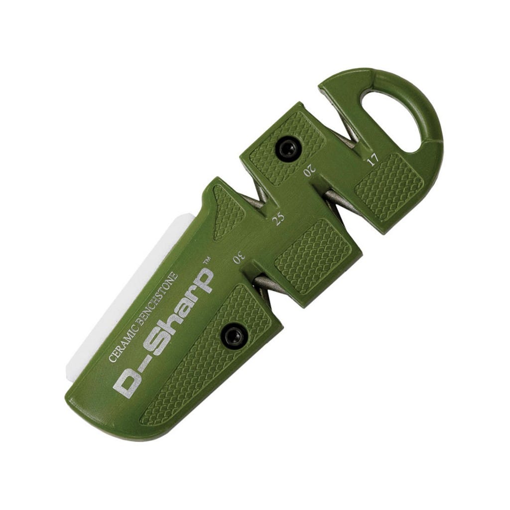 D-SHARP to wielozadaniowa ostrzałka diamentowa zaprojektowana przez amerykańską firmę Lansky. Posiada cztery kąty ostrzenia do indywidualnego wykorzystania w zależności od rodzaju narzędzia, które chcemy naostrzyć. Wymuszony kąt znacznie ułatwia pracę a kamienie diamentowe o gradacji 600 doskonale sprawdzą się w codziennym użytkowaniu i przywrócą właściwą ostrość krawędzi tnącej. Długi kamień ceramiczny o gradacji 800 służy do wypolerowania ostrzy gładkich a także noży ząbkowanych. Całość uzupełnia wytrzymała metalowa konstrukcja w zielonym kolorze. Kompaktowe rozmiary pozwolą na jej łatwe transportowanie i przechowywanie. Dodatkowo otwór na obudowie umożliwia zamocowanie linki lub karabińczyka w celu zabezpieczenia ostrzałki przed zgubieniem.