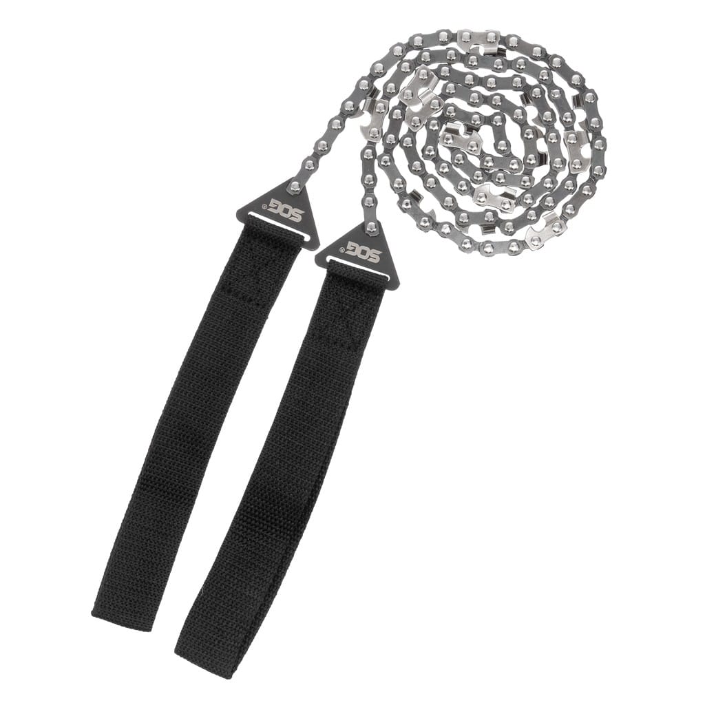 Piła łańcuchowa z dwukierunkowymi zębami tnącymi zaprojektowana przez firmę SOG, jako obowiązkowe wyposażenie każdego zestawu przetrwania. Doskonale sprawdzi się na kempingu, w ogrodzie oraz do wszelkich prac na świeżym powietrzu, gdy pojawi się na drodze drewniana przeszkoda. Narzędzie świetnie nadaje się do usuwania obumarłych drzew lub oczyszczania terenu po burzy. Piła posiada wytrzymałe, nylonowe uchwyty, które zapewniają komfort podczas użytkowania. W zestawie znajduje się również kompaktowy pokrowiec do bezpiecznego transportowania narzędzia.