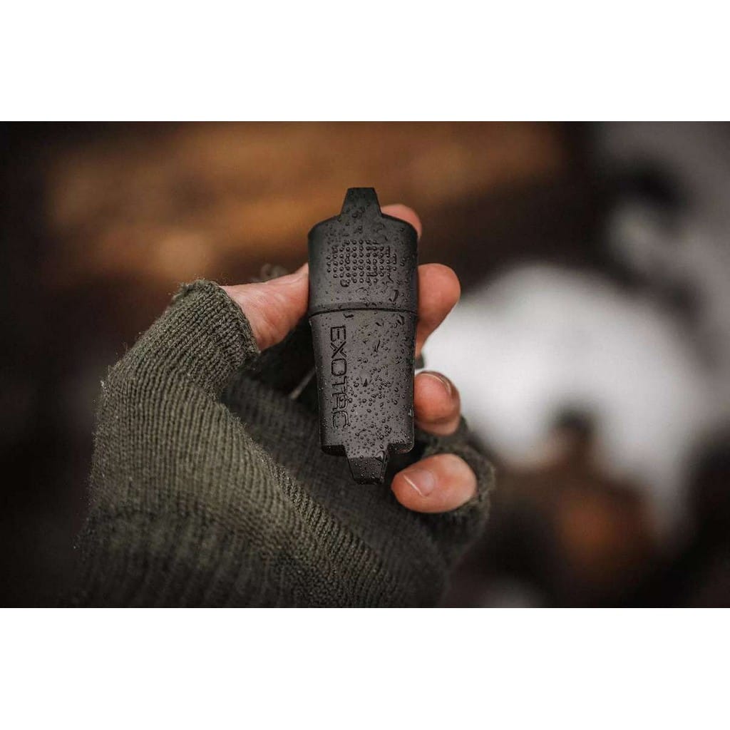 FireSLEEVE Mini amerykańskiej firmy Exotac to wodoszczelny pojemnik zaprojektowany na małą zapalniczkę BIC, chroniący przed jej zalaniem. Zbiornik składa się z korpusu wykonanego z tworzywa TPE, podobnego do silikonu, oraz z nakrętki zrobionej nylonu wzmocnionego włóknem szklanym. Elastyczna obudowa pozwala na dobre dopasowanie do przenoszonej zawartości, a sztywna pokrywa zabezpiecza sprzęt przed przypadkowym uruchomieniem. Dodatkowo model wyposażono w pasek blokujący przycisk gazu, bez konieczności trzymania na nim palca, co zapewnia swobodę rąk i eliminuje ewentualne poparzenia. Pojemnik jest wielokrotnego użytku i można wykorzystać go do każdej kolejnej zapalniczki, którą należy dokupić osobno, gdyż nie jest częścią zestawu. Możliwość rozpalenia ognia jest kluczowym parametrem przetrwania w terenie, dlatego warto zabrać ze sobą FireSLEEVE, aby zapalniczka pozostała sucha, również podczas deszczu, umożliwiając jej użycie w każdych warunkach pogodowych. Produkt jest wodoodporny do głębokości jednego metra, a wrzucony przypadkiem do wody będzie unosił się na jej powierzchni i łatwo go odnajdziemy. Antypoślizgowy materiał pojemnika gwarantuje dobrą przyczepność do dłoni użytkownika, nawet gdy jest mokra. Na obudowie znajdują się dwa otwory mocujące, dzięki którym przełożymy linkę typu paracord lub karabińczyk i przytroczymy całość do ekwipunku. FireSLEEVE to obowiązkowy element wyposażenia wszystkich miłośników survivalu i przygód na świeżym powietrzu.