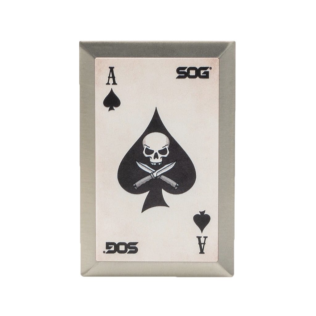 Oryginalny zestaw czterech kart do rzucania od amerykańskiej firmy SOG przenoszący sesje treningowe na wyższy poziom. Rzutki wykonano ze stali nierdzewnej 3Cr zapewniającej wyjątkowe trzymanie ostrości i odporność na zużycie. Dodatkowo każda z nich posiada kolorowy nadruk jak na rzeczywistych kartach do gry. Produkty zostały idealnie wyważone, a krawędzie naostrzone i wyprofilowane, co gwarantuje dobrą skuteczność w trafianiu do celu. Stanowią bardzo dobre uzupełnienie do kolekcji dla wszystkich entuzjastów noży, a ich pomysłowy wygląd zapewnia świetną rozrywkę podczas rzucania do tarczy w terenie lub na strzelnicy. Do kompletu dołączono również nylonową pochwę umożliwiającą bezpieczne i wygodne transportowanie wszystkich egzemplarzy. Niezależnie czy walczysz o tytuł mistrza, czy jedynie chcesz się dobrze bawić, ten zestaw będzie doskonałym wyborem, bo bez względu od sytuacji poczujesz się szczęściarzem.