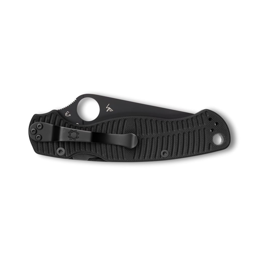 Para Military 2 to jeden z najpopularniejszych i najbardziej kultowych projektów Spyderco. Wersja Salt stanowi świetny wybór dla wędkarzy, żeglarzy, nurków oraz wszystkich miłośników aktywności wodnej. Ostrze o profilu Clip Point zrobiono z amerykańskiej stali klasy premium CPM MagnaCut. Oferuje ona wyjątkową równowagę między trzymaniem ostrości, wytrzymałością, a ekstremalną odpornością na korozję. W celu zabezpieczenia głowni przed negatywnym działaniem czynników zewnętrznych pokryto ją czarną i antyodblaskową powłoką DLC (Diamond Like Carbon) o twardości zbliżonej do diamentu. Klinga cechuje się perfekcyjnie umiejscowionym okrągłym otworem, za pomocą którego można szybko wysunąć ostrze jedną ręką. Opatentowany mechanizm blokujący Compression Lock pewnie utrzymuje nóż po rozłożeniu oraz pozwala bezpiecznie złożyć folder. Karbowany grzbiet głowni daje stabilne wsparcie dla kciuka ułatwiając wykonywanie zadań wymagających większej precyzji. Do stalowych linersów przymocowano ergonomicznie wyprofilowane okładziny rękojeści z lekkiego i wytrzymałego tworzywa G10 w czarnym kolorze. Specjalna faktura o antypoślizgowych właściwościach gwarantuje dobrą przyczepność do dłoni użytkownika. Na zakończeniu umieszczono otwór umożliwiający przełożenie breloka ozdobnego lub paracordu. Konstrukcję uzupełnia czteropozycyjny klips mocujący do wygodnego przenoszenia noża w kieszeni spodni, wedle indywidualnych preferencji. Model, wyprodukowany w mieście Golden w stanie Kolorado w USA, jest niezawodnym narzędziem, które doskonale sprawdzi się w wilgotnym środowisku.